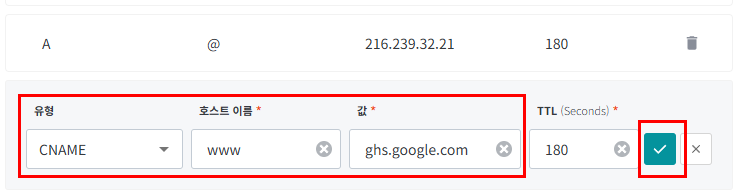 - 구글이 제시하는 CNAME 값 확인