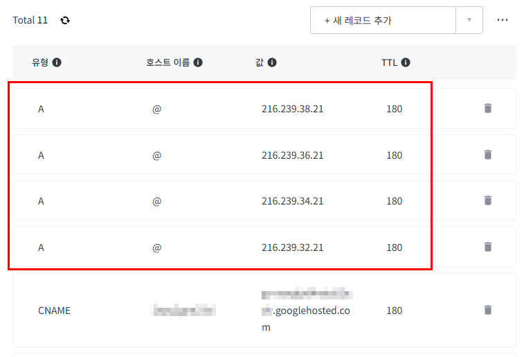 - A 레코드 추가 (총 4개)