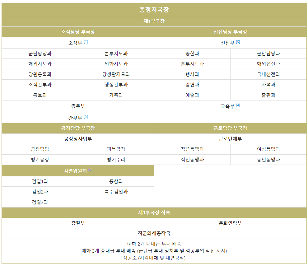 - 형식상 총정치국은 국방성 산하로 분류되지만, 실제 운영은 당 중앙군사위의 지도-감독 하에 이루어지며, 국무위원회의 큰 틀 속에서 움직입니다.