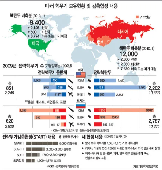 핵무기를 보유하고 유지하기 위해서는 꽤 많은 경제적 부담이 듭니다. 러시아도, 미국도 그 보유수량을 유지하기 힘들었기 때문에 상호 감축 협약을 통해서 꾸준히 핵탄두의 수를 줄여 왔습니다. 2024년 핵무기 보유 현황은 다음과 같습니다.