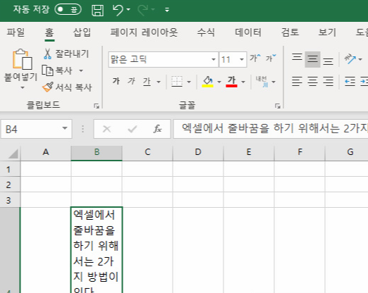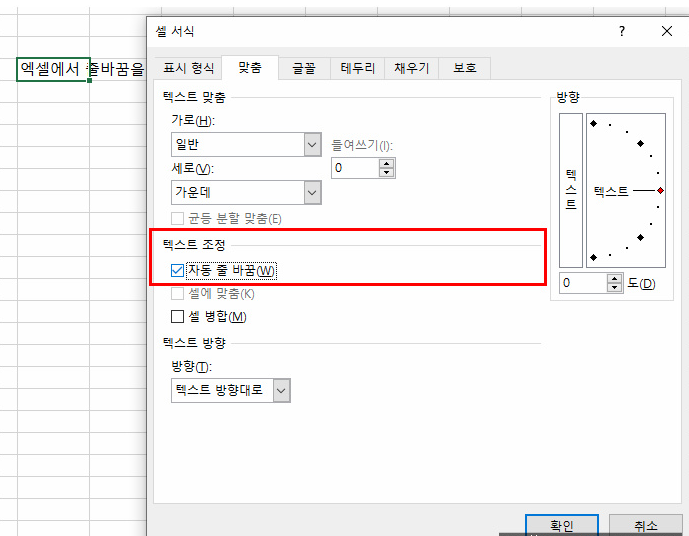 엑셀 셀 안에서 줄바꿈이 안 될 때 체크리스트