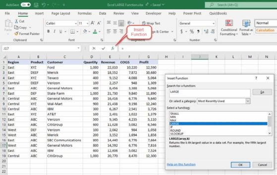 - 설명: RANK는 순위, LARGE는 n번째 큰 수, SMALL은 n번째 작은 수를 계산합니다.