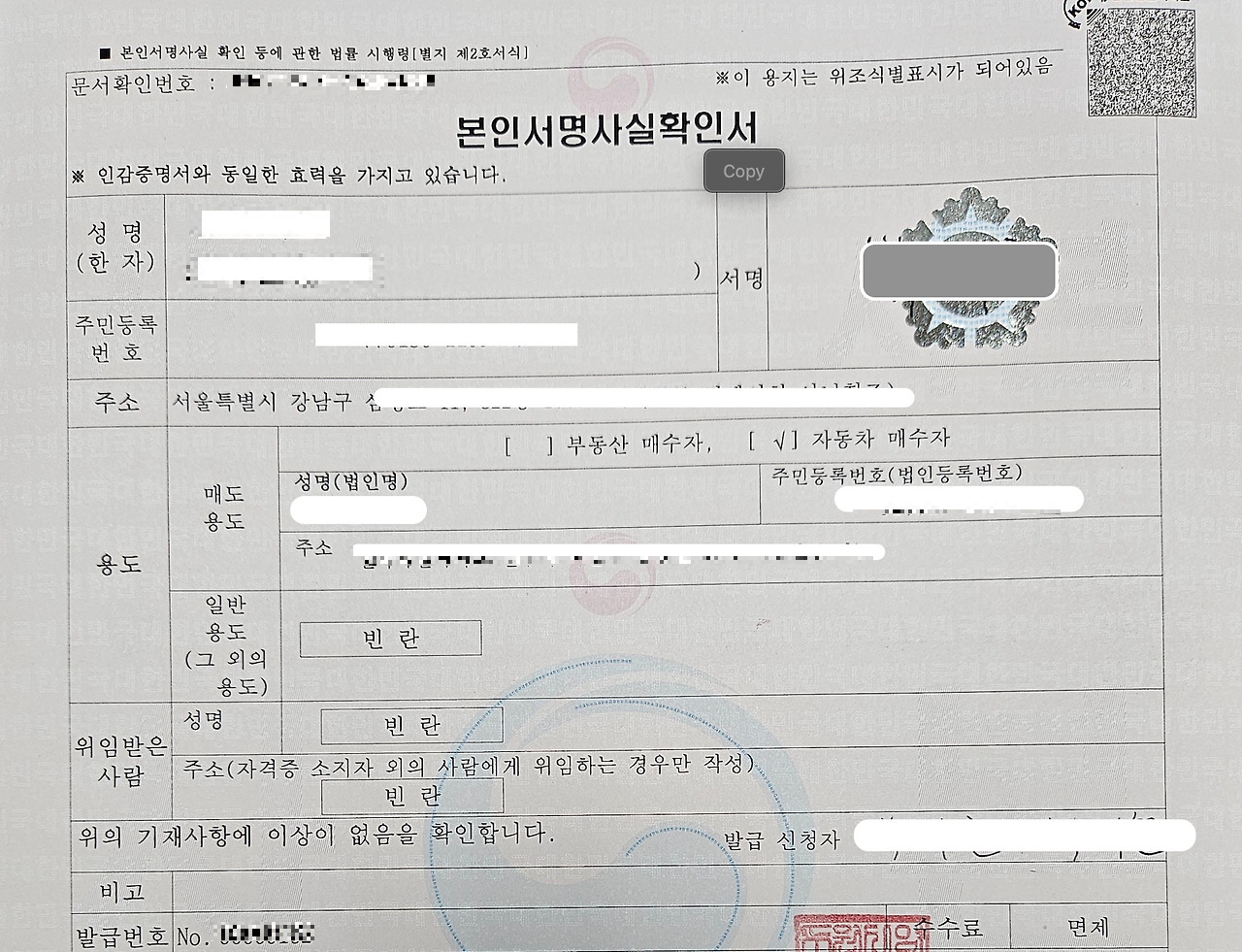 자동차 매도용 본인서명사실 확인서와 인감증명서의 차이