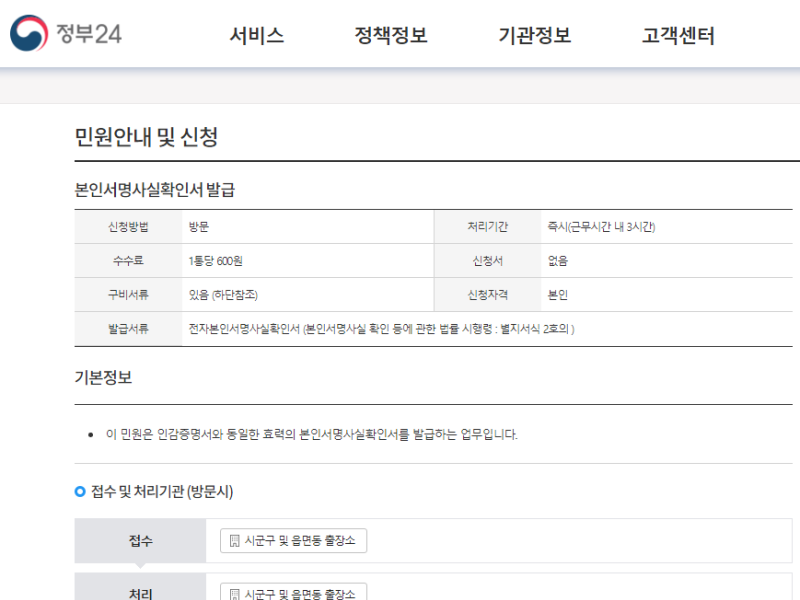 - 수수료를 지불한 뒤 확인서를 수령합니다.