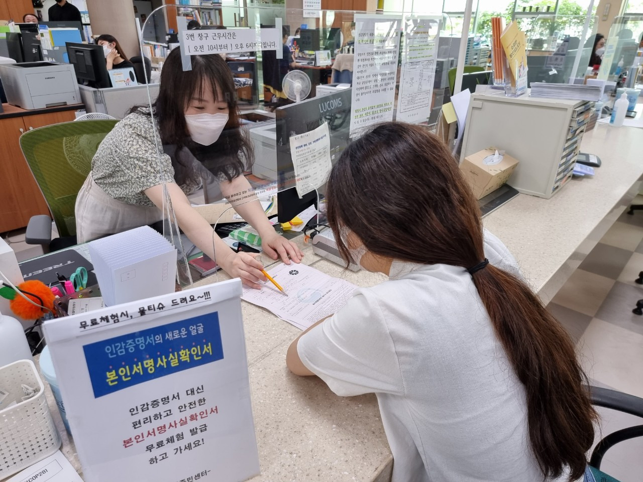 - 신청서와 신분증을 제출하여 본인 확인을 거칩니다.