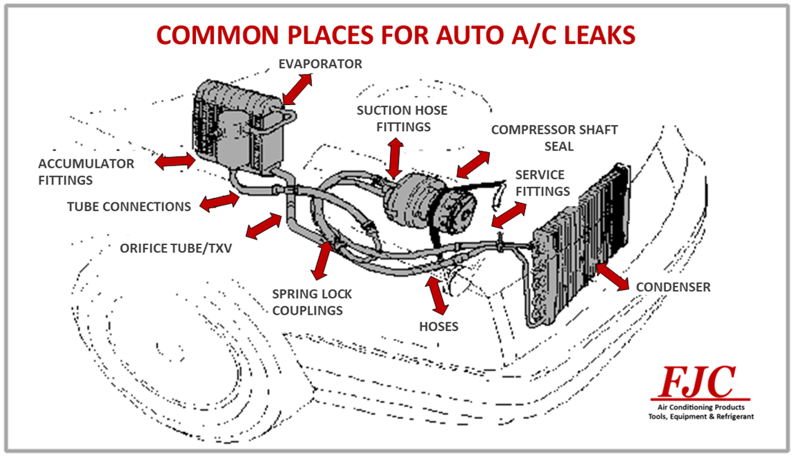 자동차 에어컨 가스가 부족한 근본적인 이유는 ‘누출’입니다. 에어컨 시스템은 밀폐 회로이기 때문에 정상이라면 가스가 빠져나가지 않습니다. 가스가 줄었다는 것은 곧 어딘가 새고 있다는 의미입니다. 대표적인 누출 원인을 하나씩 살펴보겠습니다.