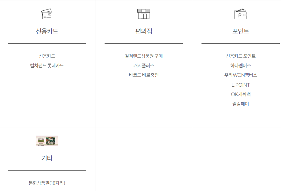 - 사용처: 컬처랜드 온라인/모바일 충전 후 게임·도서·음원·OTT·편의점 등