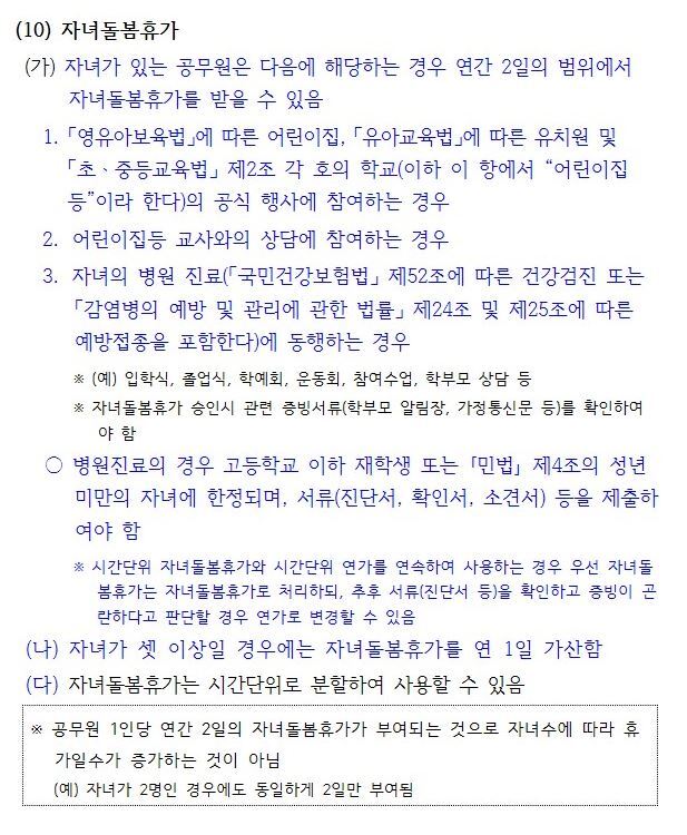 자녀돌봄휴가의 필요성과 국가 지방 공무원 복무규정