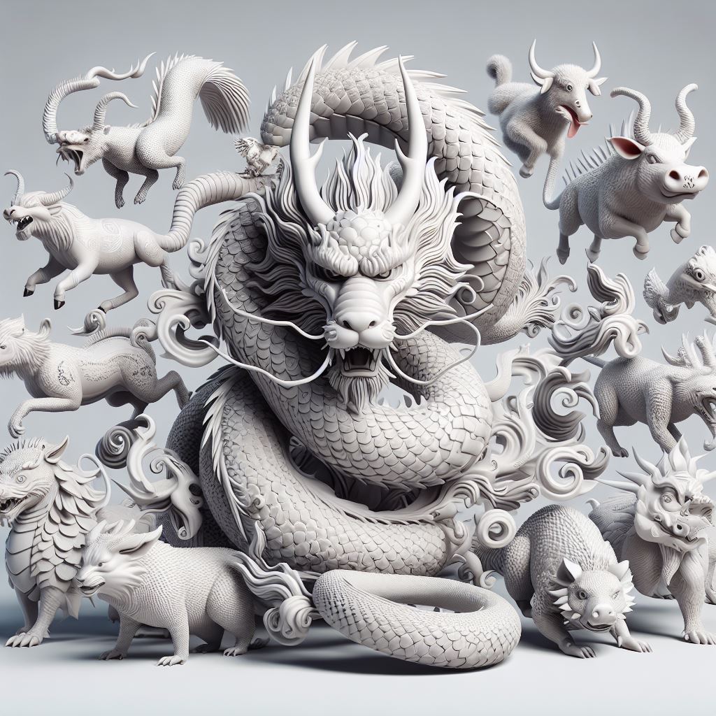 - 호랑이·용 같은 위용의 동물은 봄의 기세를, 말·닭은 여름과 가을의 활력과 규율을, 돼지는 겨울의 포만과 휴식을 표현합니다.